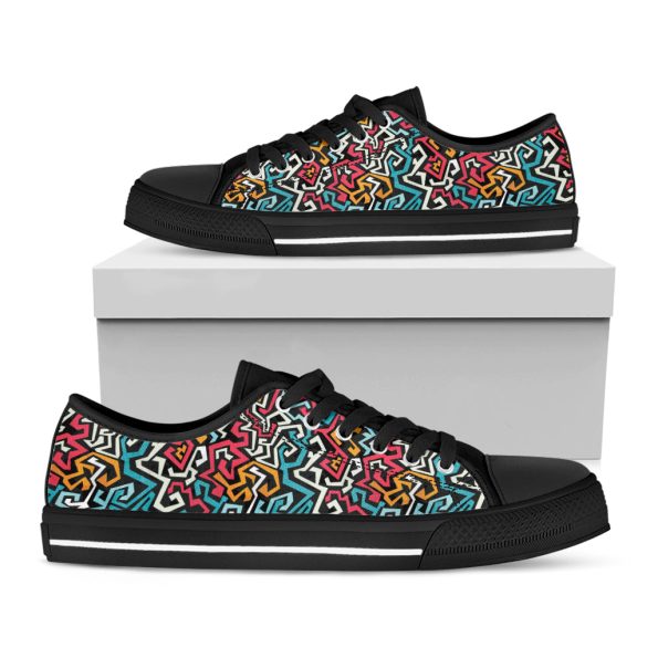 Abstract Funky Pattern Print Black Low Top Shoes