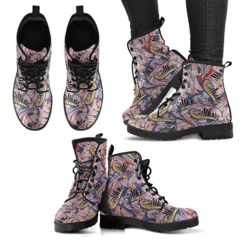 Funky Patterns In Blues – Leather Boots Fashion Boots Custom Shoes For Women